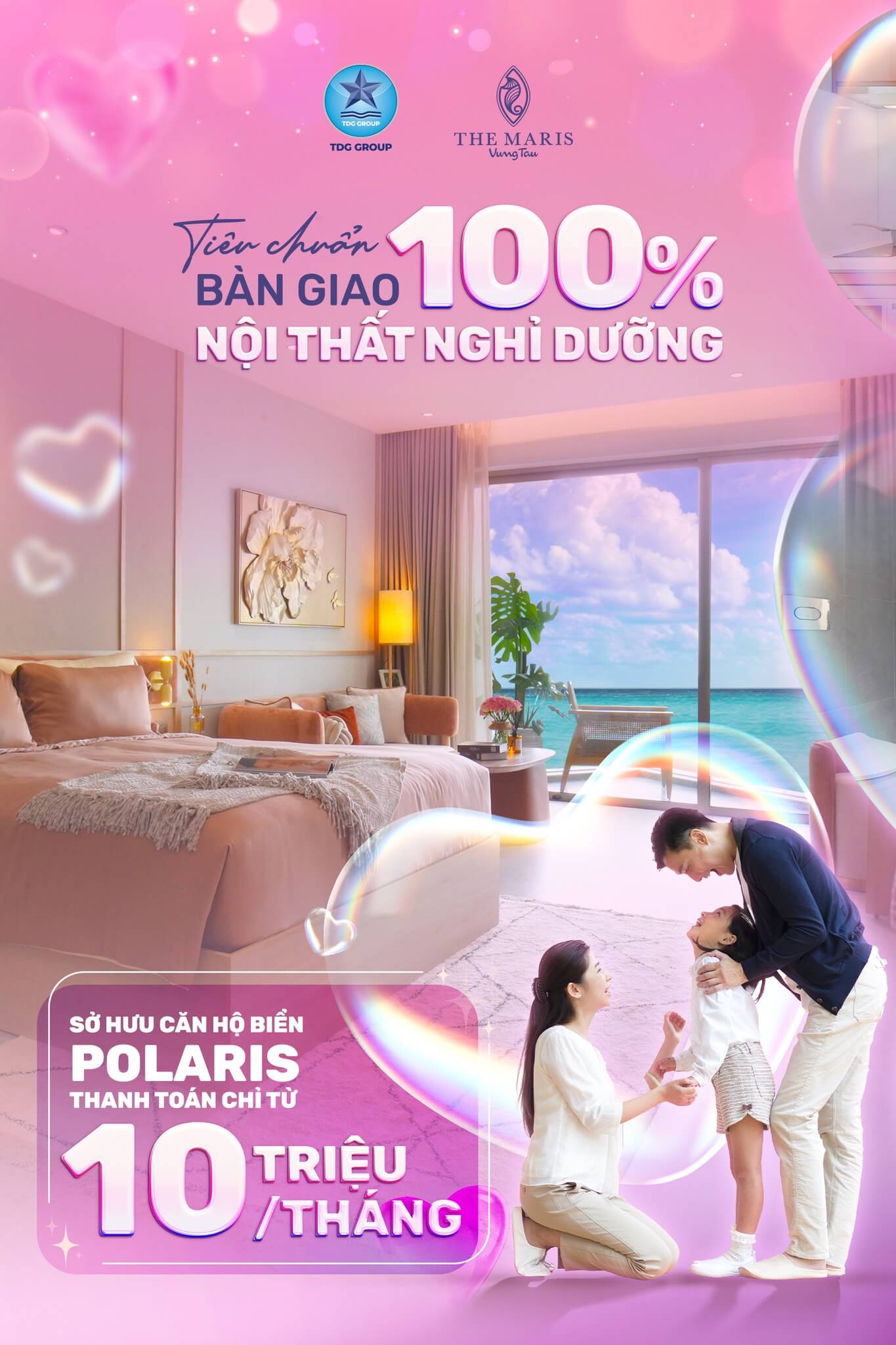 Căn hộ biển Polaris, The Maris Vũng Tàu tiêu chuẩn bàn giao 100% full nội thất nghỉ dưỡng